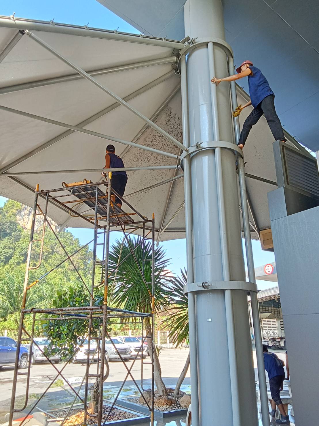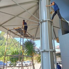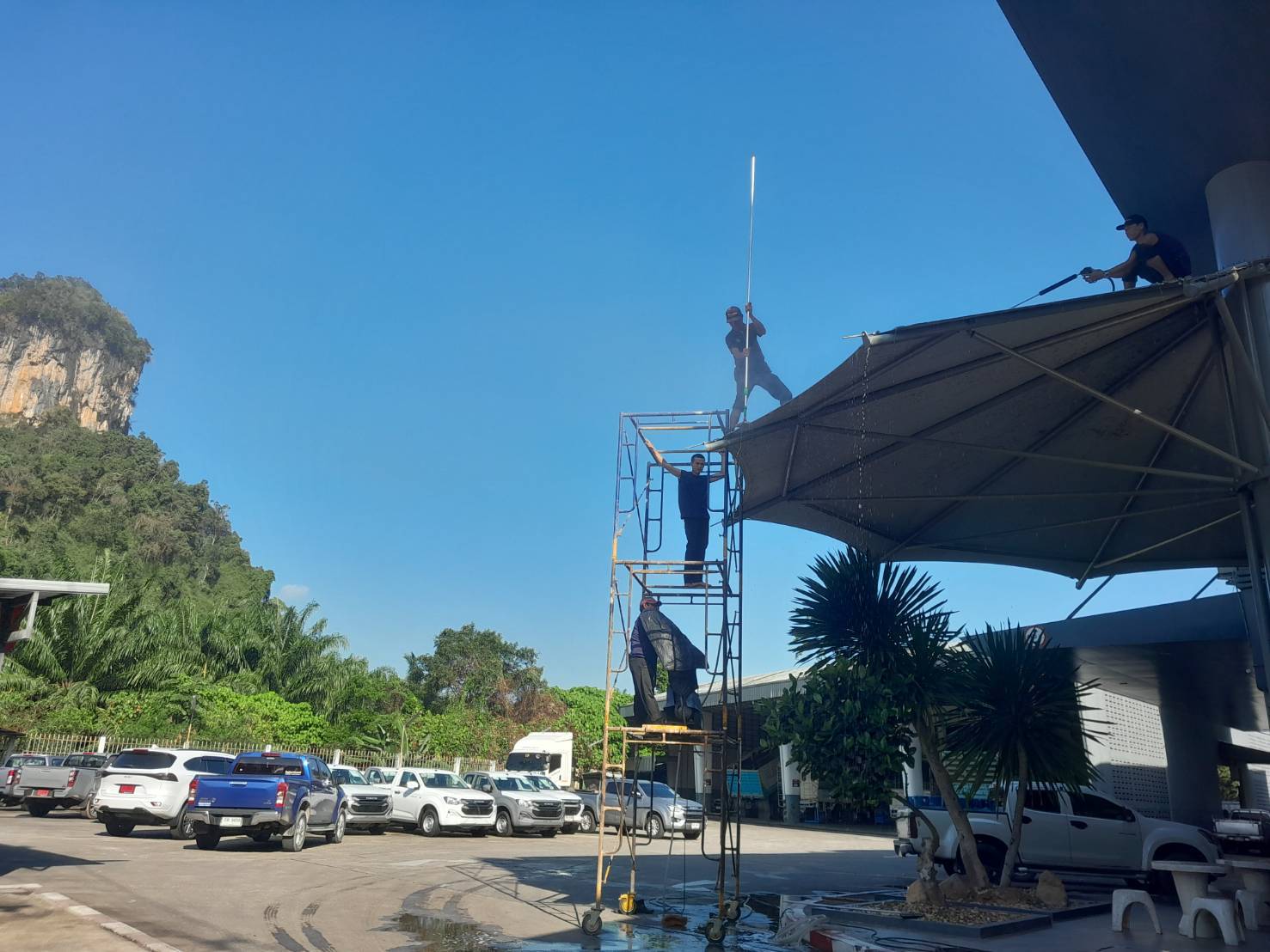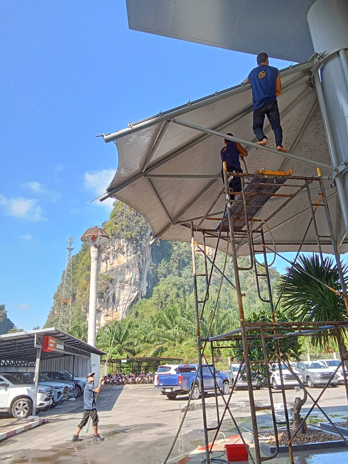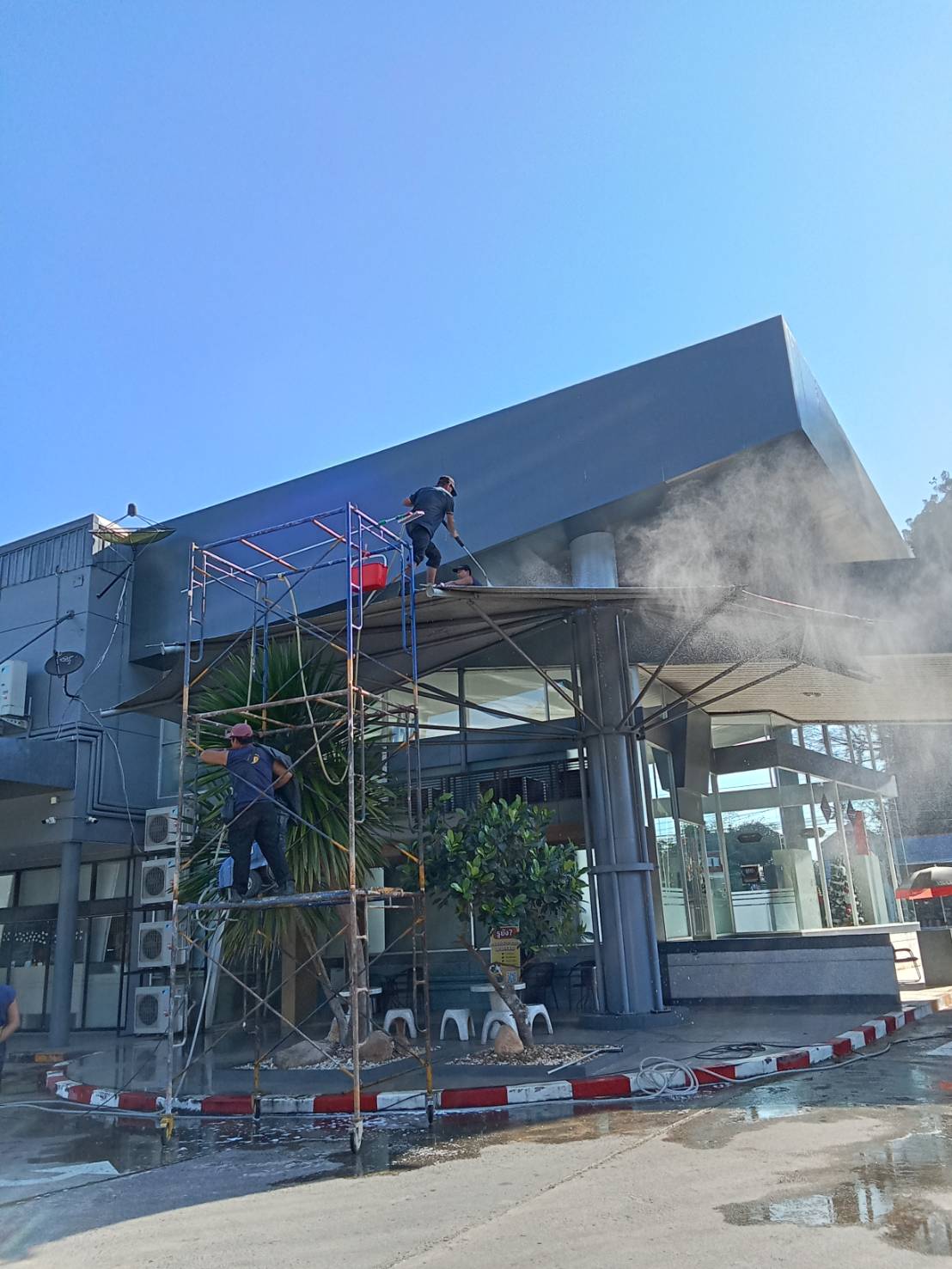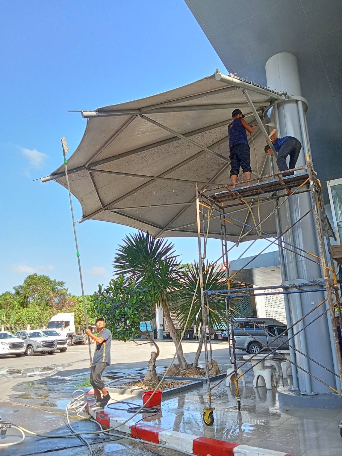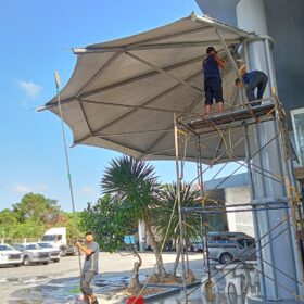 บริการทำความสะอาด ฉีดน้ำแรงหลังคาผ้าใบ Aphrodite