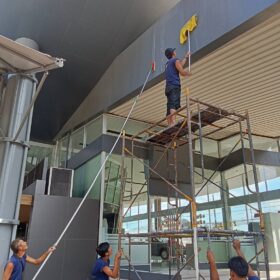 งานทำความสะอาดเช็ดกระจกรอบอาคาร โรงพยาบาลองค์การบริหารส่วนจังหวัดภูเก็ต