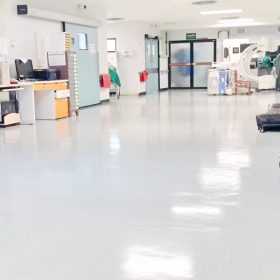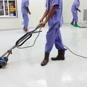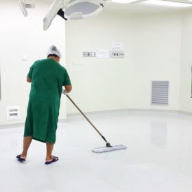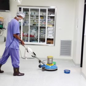 โรงพยาบาลเป็นอีกหนึ่งสถานที่ที่ต้องรองรับผู้มารับการรักษาในแต่ละวันเป็นจำนวนมาก อีกทั้งยังมีบุลคลากรของโรงพยาบาล แพทย์ พยาบาล เจ้าหน้าที่ฝ่ายต่างๆ อีกมากมาย เป็นสถานที่ที่มีการใช้งานอยู่ตลอด 24 ชั่วโมง เพราะอย่างนี้ โรงพยาบาลจึงคำนึงและให้ความสำคัญในเรื่องของความสะอาดเป็นพิเศษ ทางบริษัทฯ ได้รับโอกาสเข้าไปดูแลขัดล้างและเคลือบเงาพื้นห้องผ่าตัดโรงพยาบาลวชิระภูเก็ต ซึ่งเป็นเขตปลอดเชื้อ โดยในทุกๆขั้นตอน ไม่ว่าจะอุปกรณ์ เครื่องไม้เครื่องมือ แม้กระทั่งเครื่องแต่งกาย จะต้องผ่านการฆ่าเชื้อก่อนทั้งสิ้น เพื่อให้สะอาดและปลอดภัยที่สุด ซึ่งขั้นตอนการทำ เราจะเริ่มจากการขัดล้างทำความสะอาดพื้นก่อน เป็นการเคลียร์พื้นที่ให้สะอาดก่อนทำการเคลือบเงา โดยน้ำสกปรกจากการขัดล้าง เราใช้วิธีการดูดทิ้ง จะไม่ใช้การปาดหรือโกยออกเพราะเชื้อโรคจะยังติดค้าง เมื่อขัดล้างเรียบร้อยแล้วก็จะเป็นในส่วนของการเคลือบเงา ซึ่งการเคลือบเงาครั้งนี้สามารถเรียกอีกอย่างว่าการแว๊กซ์น้ำ โดยการลงแว๊กซ์น้ำ จะต้องใช้ผู้ที่มีความเชี่ยวชาญและรู้วิธีในการทำ เพราะหากปฏิบัติไม่ถูกวิธี สภาพพื้นที่ได้จะไม่เรียบและเห็นเป็นลายผ้าไม่สวยงาม และเมื่อแว็กซ์แห้งแล้วก็ลงทับใหม่ซ้ำอีกครั้ง ทำแบบนี้ทั้งหมดประมาณ 6 โค้ท สภาพพื้นที่ได้ก็จะเงางาม เหมือนใหม่ขึ้นดังภาพ ต้องขอขอบคุณทางโรงพยาบาลวชิระภูเก็ต ที่ไว้วางใจใช้บริการงานทำความสะอาดกับทางบริษัทฯ ค่ะ