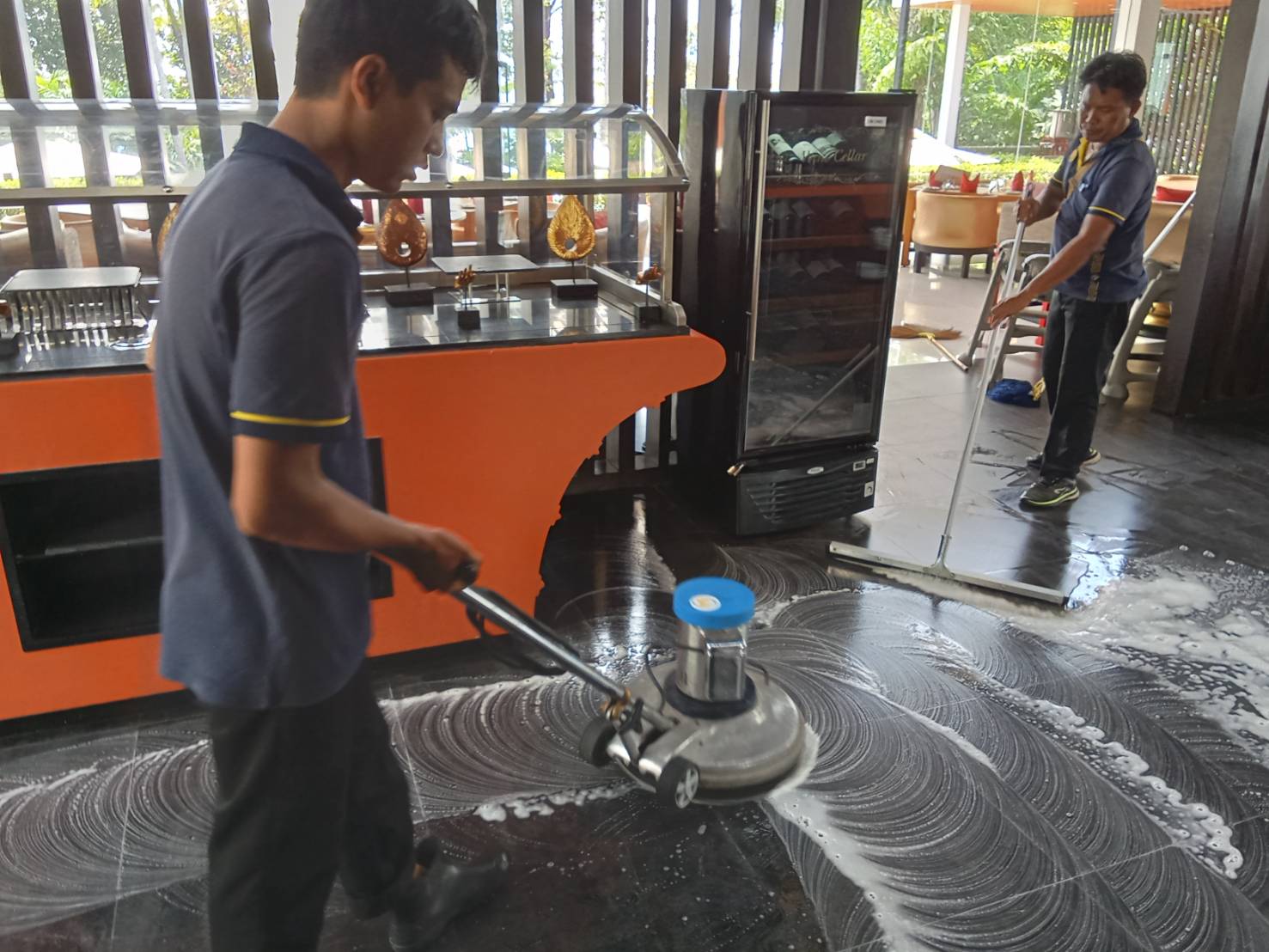 CLUB MED ทำความสะอาดห้องอาหารขนาดใหญ่