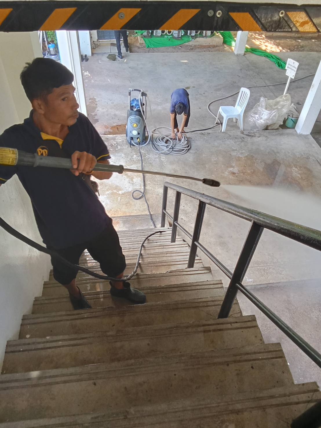ปัดหยากไย่ทางเดิน บันไดหนีไฟ รพ.อบจ.ภูเก็ต