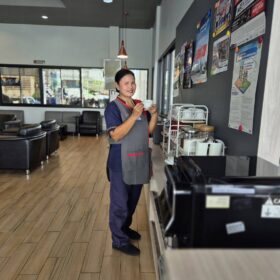 คุณแม่จู้ พนักงานทำความสะอาดประจำร้านขายของฝาก