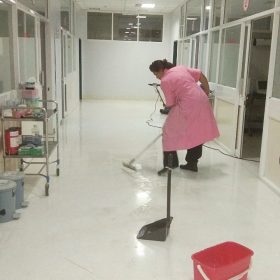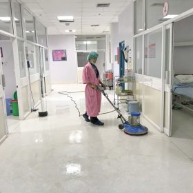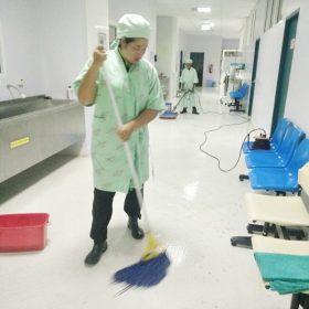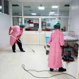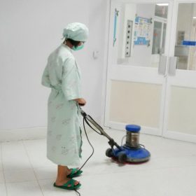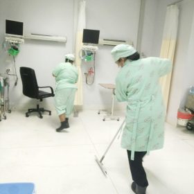 โรงพยาบาลเป็นสถานที่ที่มีผู้เข้าใช้บริการในแต่ละวันเป็นจำนวนมาก เพราะไม่ว่าใครจะป่วยหรือบาดเจ็บก็ต้องเข้ารับการรักษา ณ โรงพยาบาลทั้งนั้น เพราะเหตุนี้ ทางโรงพยาบาลจึงต้องให้ความสำคัญกับเรื่องความสะอาดเป็นพิเศษ ไม่ว่าจะเป็นความสะอาดของสถานที่ อุปกรณ์เครื่องมือเครื่องใช้ต่างๆ รวมถึงตัวเจ้าหน้าที่เองด้วย และแม่บ้านทำความสะอาดของทางบริษัทฯ ก็ให้ความสำคัญกับเรื่องความสะอาดมากเช่นเดียวกัน ดังตัวอย่างตามภาพ ก่อนการเข้าทำความสะอาดห้องคลอด (LR) ห้องผ่าตัด (OR) แม่บ้านทำความสะอาดจะต้องสวมชุดคลุมปลอดเชื้อ ก่อนเข้าทำความสะอาดทุกครั้ง ซึ่งชุดคลุมนี้ได้ผ่านการฆ่าเชื้อจากทางโรงพยาบาลเรียบร้อยแล้ว จึงมั่นใจได้ว่าทุกขั้นตอนของการทำความสะอาดปลอดภัยและถูกต้องตามหลักอนามัยแน่นอน
